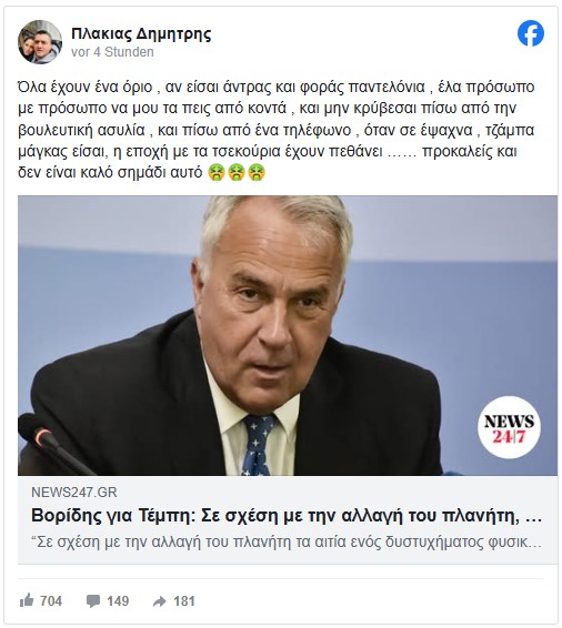 Όλα έχουν ένα όριο, αν είσαι άντρας και φοράς παντελόνια, έλα πρόσωπο με πρόσωπο να μου τα πεις από κοντά και μην κρύβεσαι πίσω από την βουλευτική ασυλία.